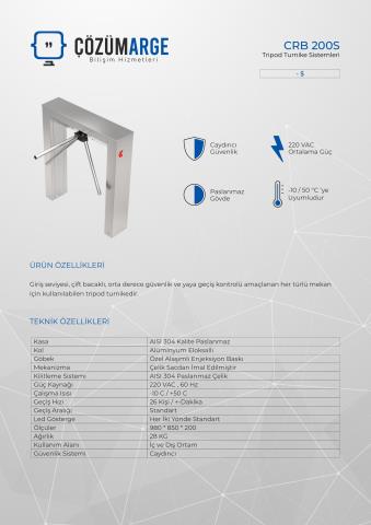 Atlas Turnike Crb 200S Çift Ayaklı Dar Kasa Paslanmaz Turnike ISO Belgesi pdf İndir