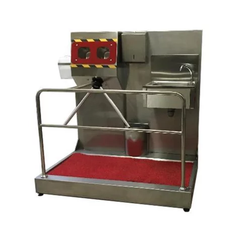 Aısı 304 Kalite Paslanmaz Çelik Ölçüler 130x95x165 İki El Aynı Anda Dezenfektan Almadan Turnike Geçiş İzni Vermez Ayaklar İçin Hijyenik Paspaslı Havuz Sabunluklu Evyeli Peçete Ve Çöp Kovası Çift Çanak Hazneli Dezenfektan Bölmesi