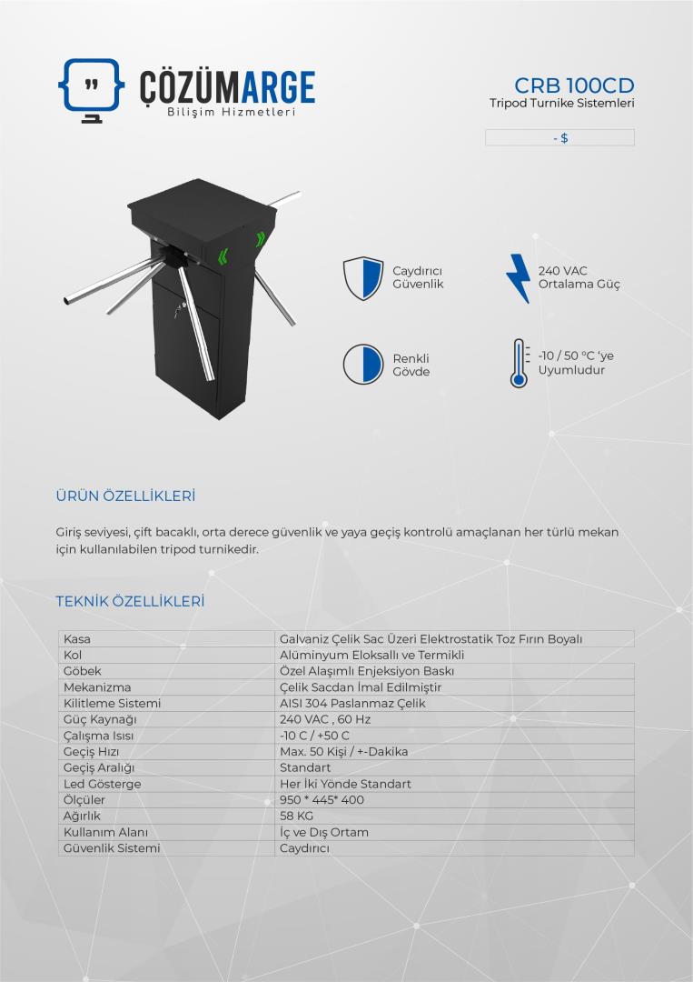 Atlas Turnike Crb 100Cd Eko Renkli Tek Ayaklı Double Turnike Sartname pdf İndir
