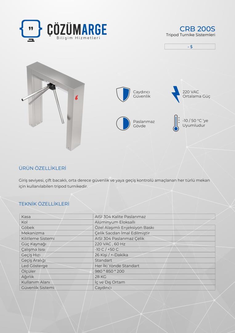 Atlas Turnike Crb 200S Çift Ayaklı Dar Kasa Paslanmaz Turnike Çekmeköy